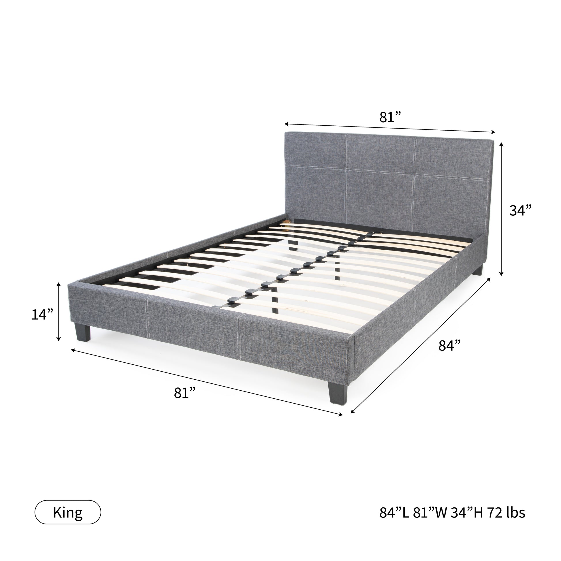 - Height to top of headboard: 34"