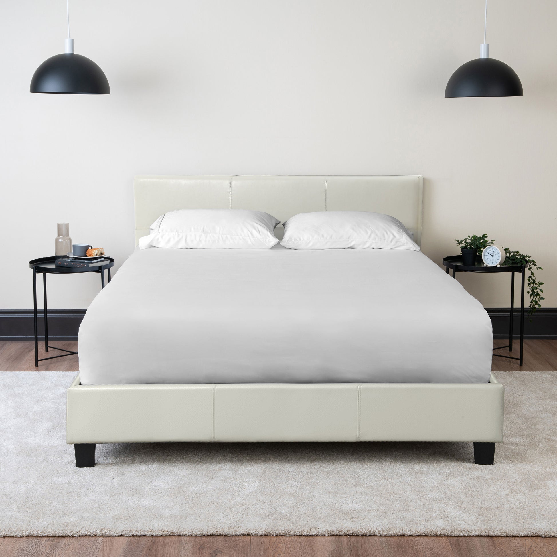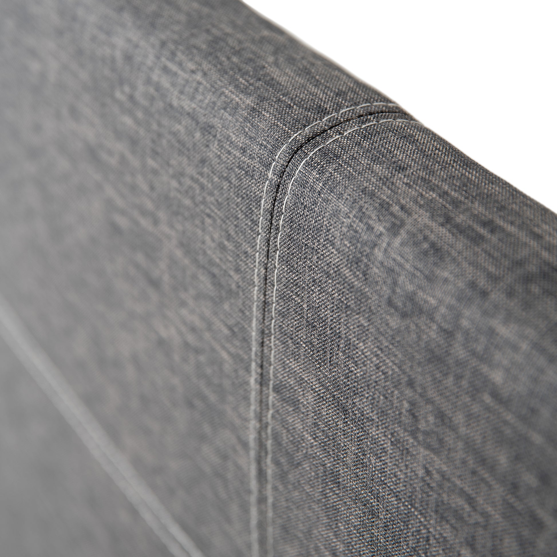 Simple straight lines and 90-degree corners. Available in Grey Linen Fabric or White Leather.