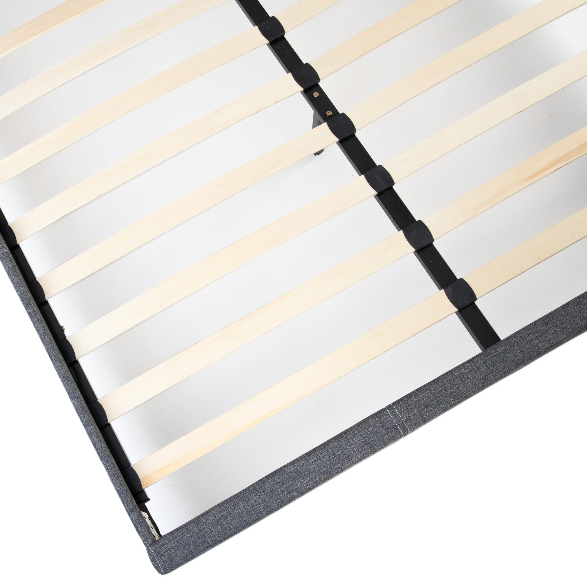 - No, there are wooden slats that extend from side to side, providing stable support for the mattress.