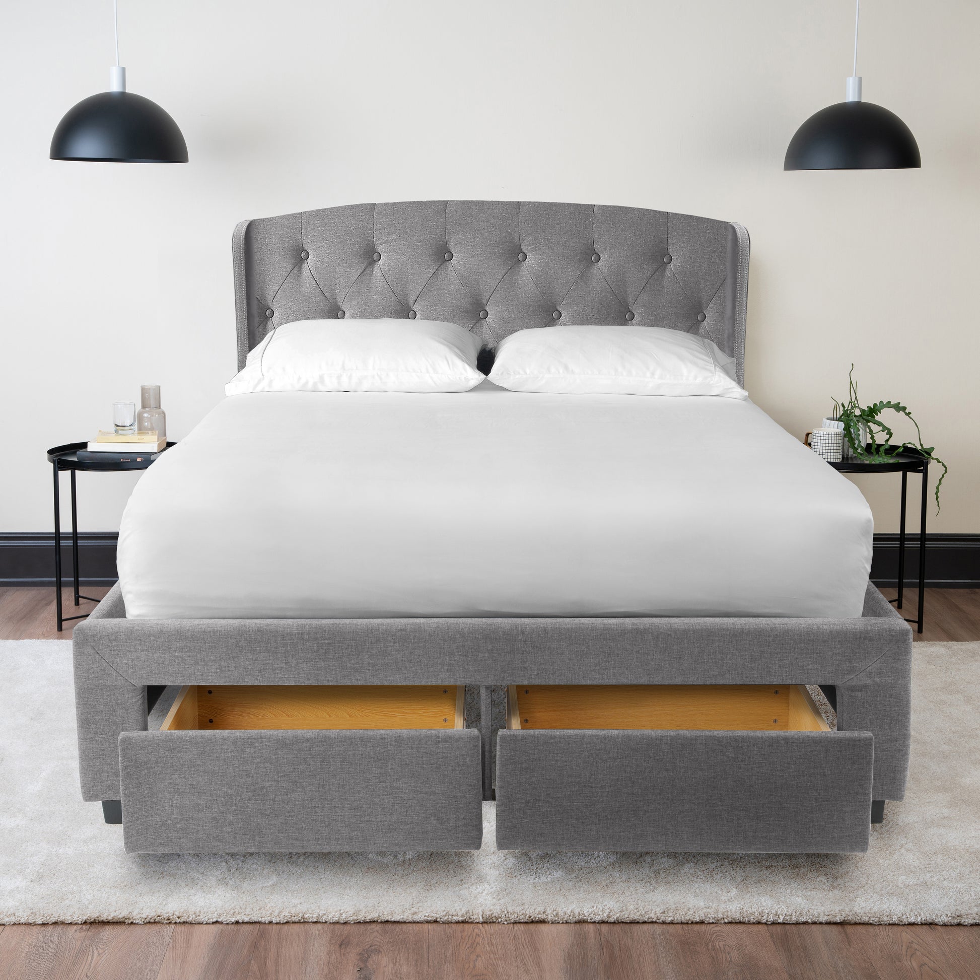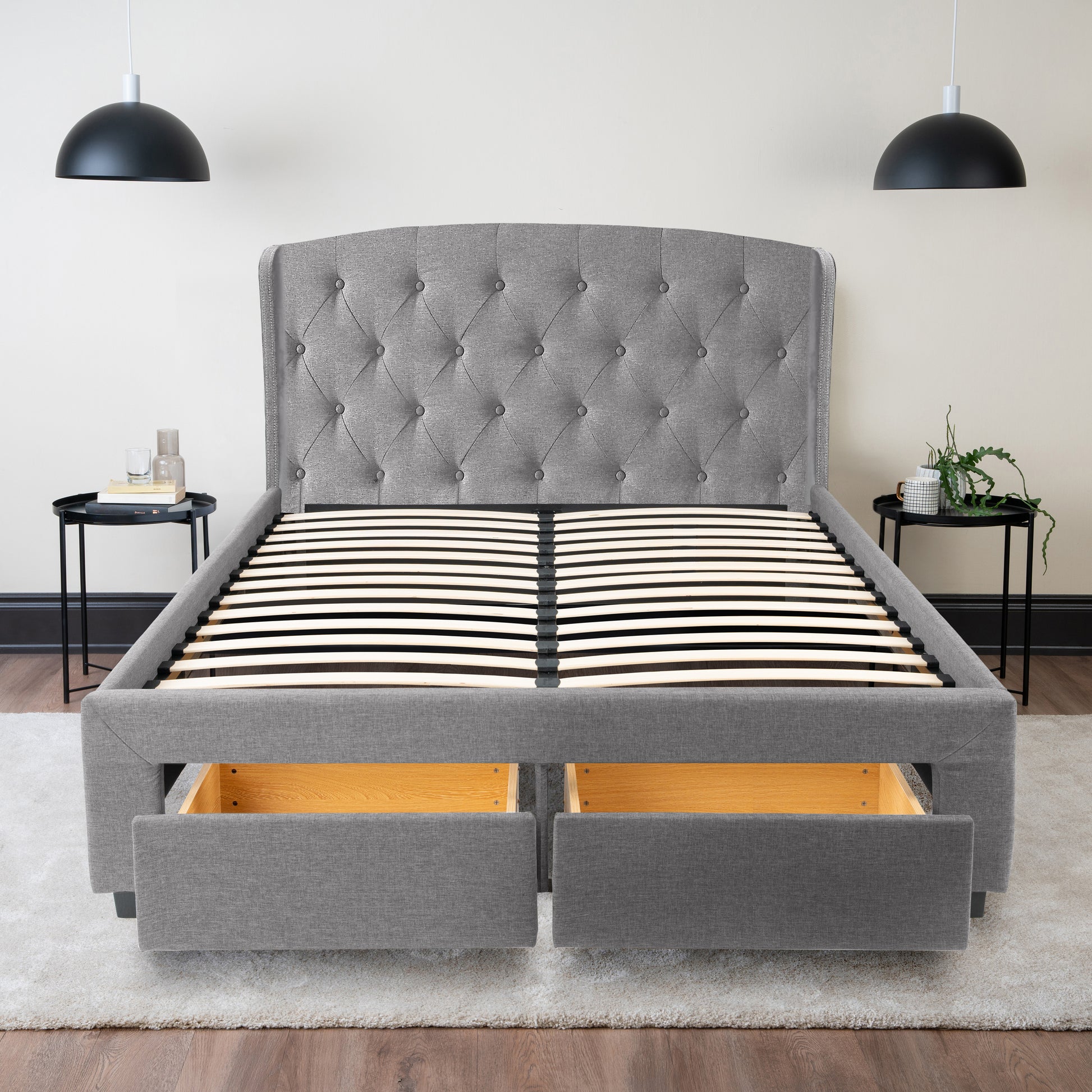 Grey Fabric Bed with 2 Front Pull Out Drawers