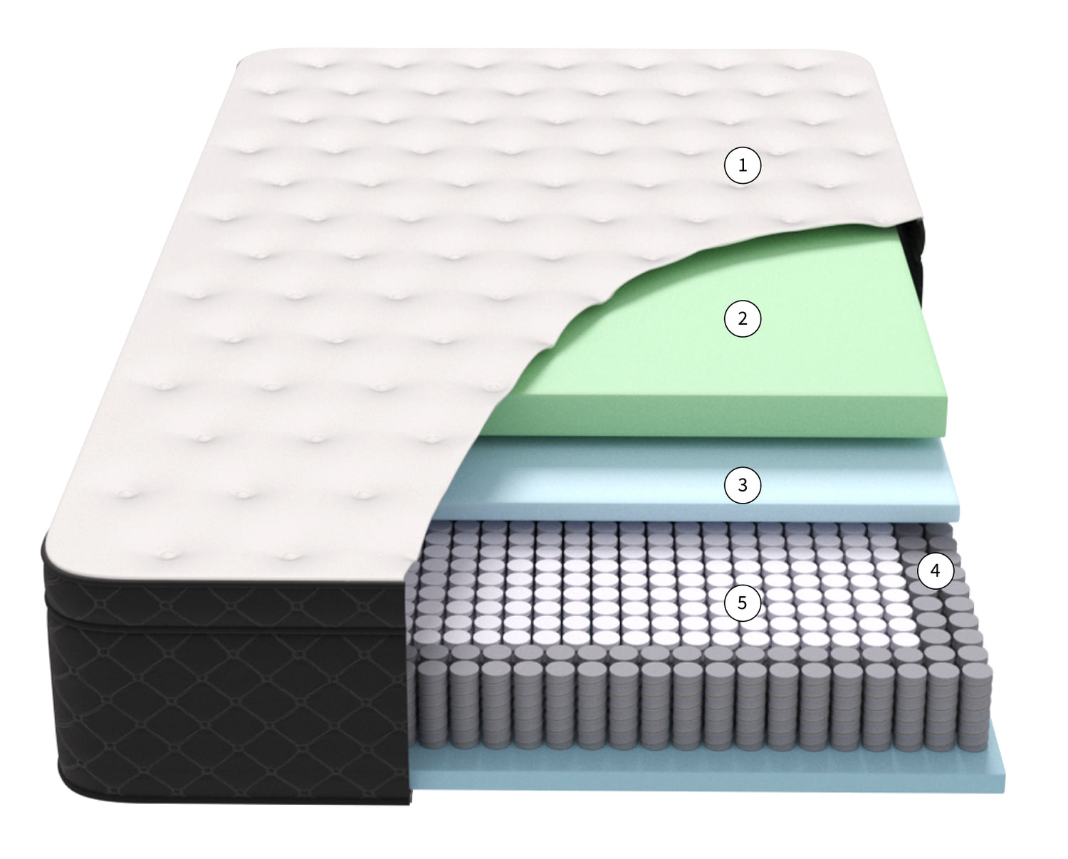 Our double-tempered, high carbon, Canadian Steel, pocket coil design eliminates movement transfer between you, your partner, or your dog, allowing you to sleep undisturbed in peace. Simultaneously providing the most support and comfort.